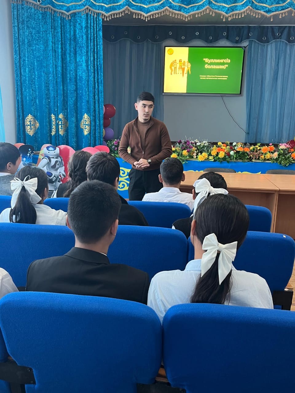 Жамбыл облыстық психологиялық қолдау орталығының мамандары мен мектеп психологы бірлесіп, 8-11 сынып білім алушыларымен "Буллингсіз болашақ" тақырыбында буллингтің алдын алу бойынша түсіндірме жұмыстарын жүргізді. "Буллинг" тақырыбында жасырын сауалнама алынды. Оқушыларға психологиялық кеңес береді.